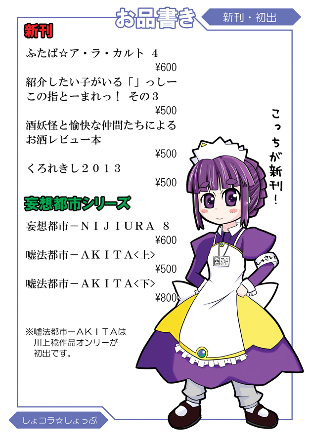 2013年5月開催のふたば学園祭8のサークル告知ページなどです。
